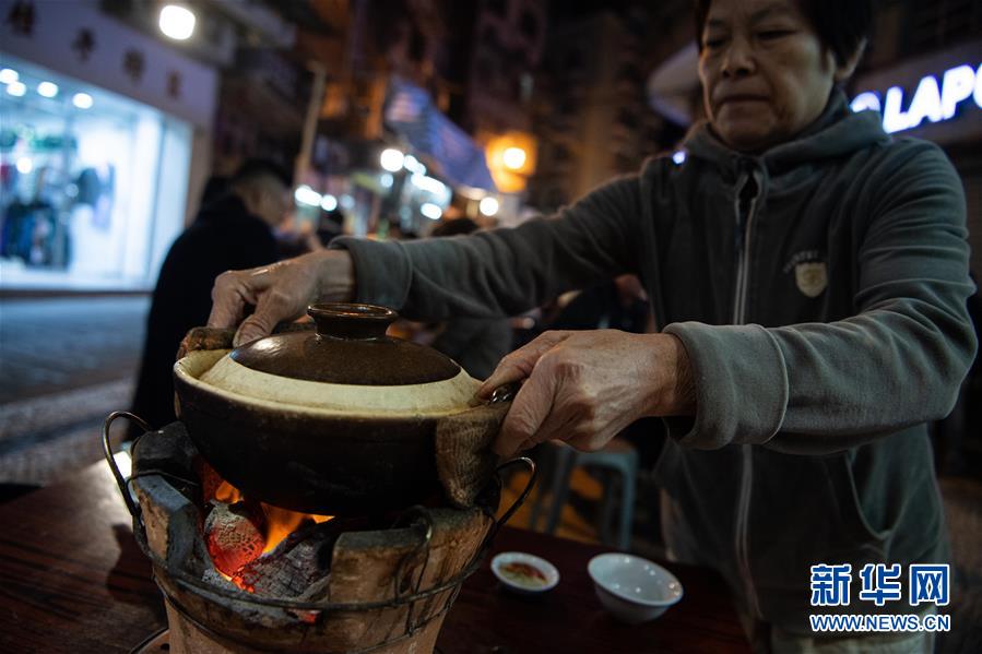 12月3日,在位于澳门新马路关前街街口的“强记羊腩煲”,员工在忙碌。新华社 张金加 摄