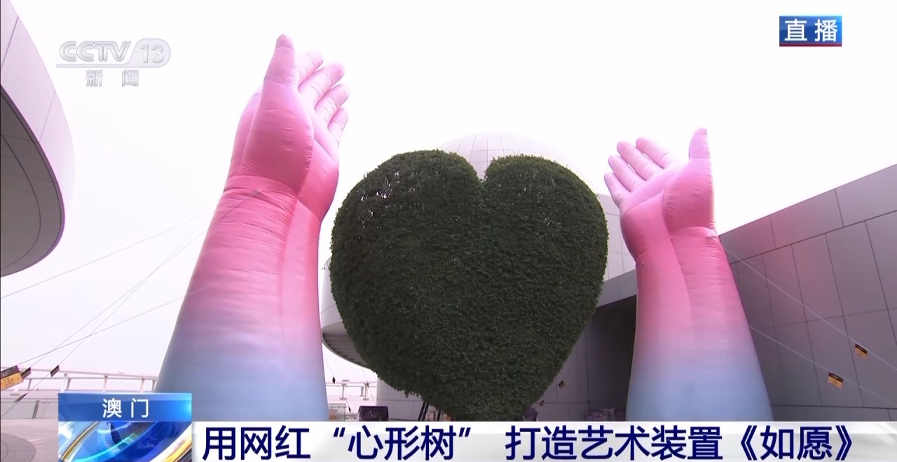 总台央视记者 曾文甫:我现在位于澳门科学馆。在我身旁有一棵高约10米、造型非常独特的网红“心形树”。