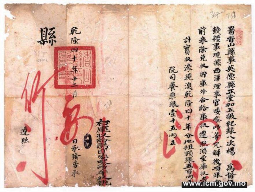 《清代澳门地方衙门档案》由1500多件中文文书原件、5册澳葡议会葡文译本和4小包零散文件合共3600份档案文书组成。这批档案主要形成于18世纪中叶至19世纪中叶,即在在中国清代乾隆初期到道光末期。档案主体是澳门同知、香山知县及县丞等地方官员在行使中国对澳门管治权的过程中,与澳门议会理事会官员之间文书往来所形成的地方衙门档案,体现中国对澳门拥有领土和统治主权。