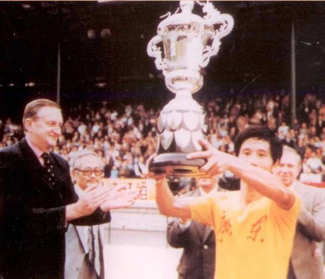 1979年,广东队队长何佳在香港捧起首届省港杯冠军奖杯。图源网络
