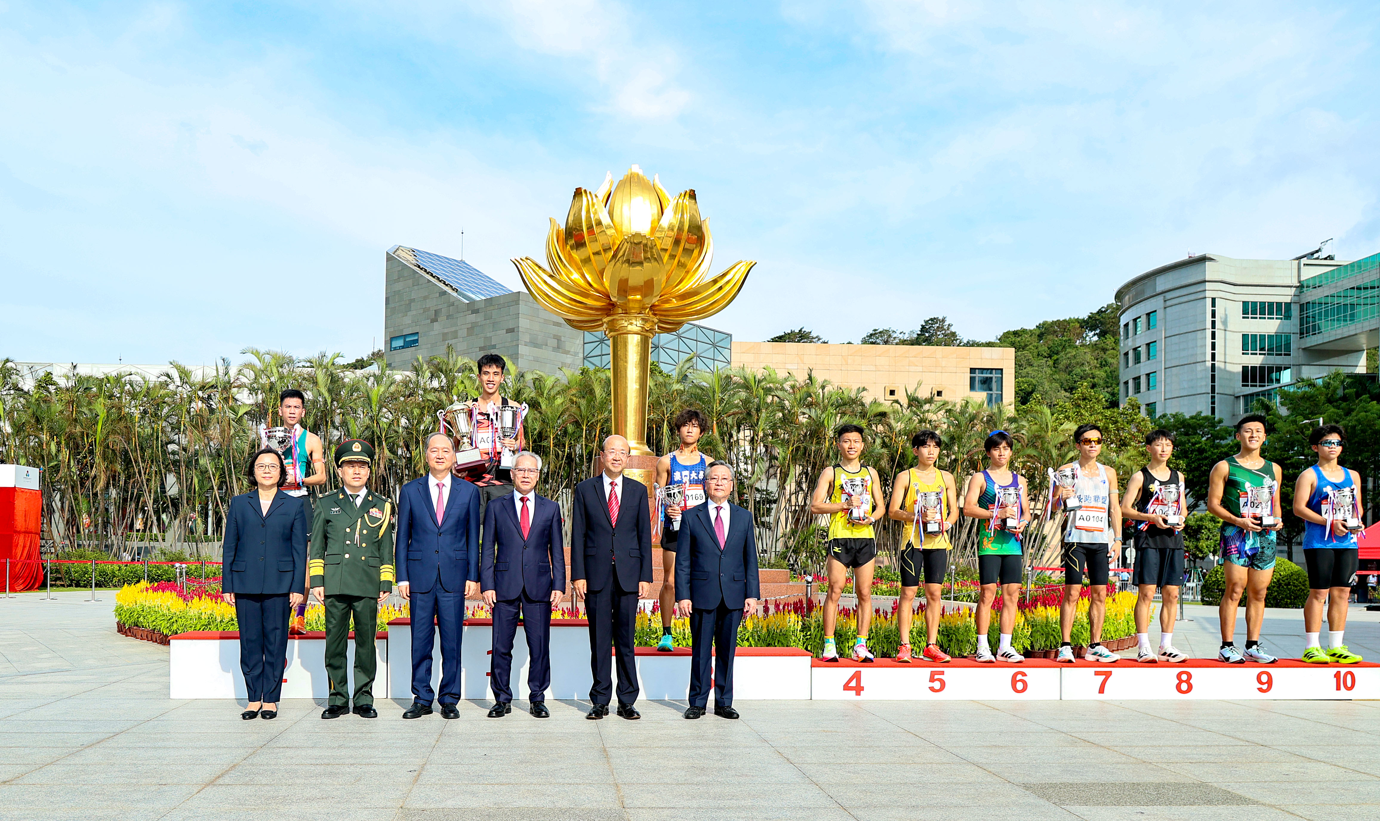 8时整,特区政府在金莲花广场举行隆重的升旗仪式。行政长官岑浩辉,中央政府驻澳门联络办公室主任郑新聪,外交部驻澳门特派员公署特派员刘显法、解放军驻澳门部队政委林庆华、立法会主席高开贤、终审法院院长宋敏莉,中央政府驻澳门联络办公室副主任黄柳权出席。升旗仪式后,还举行了“世界步行日欢乐跑”活动及太极扇、拳术表演等大众体育项目汇演。