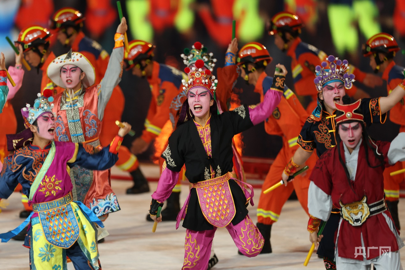 开幕式将传统岭南文化与前沿科技深度融合。醒狮表演与AIGC、VR技术相互交融,英歌锣鼓搭配全息投影,龙舟竞渡场景通过AR技术“划”入观众席。除了粤剧、咏春、麒麟等广为人知的传统元素外,广绣的精美纹样、广珐琅的流光溢彩、嵌瓷的立体拼贴等散落在民间的文化符号,经过创新设计后焕发新意,在开幕式舞台上惊艳亮相。