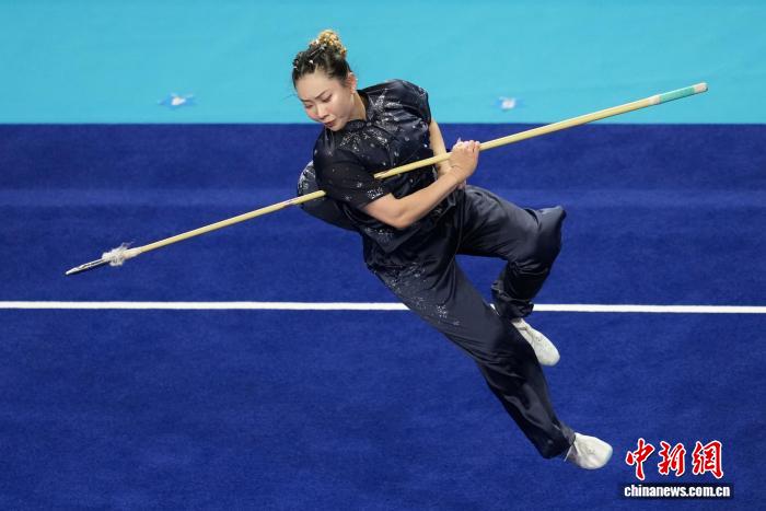 11月8日,第十五届全国运动会武术套路女子长拳剑术枪术全能比赛在广州南沙体育馆举行。图为香港队选手沈晓榆在比赛中。中新社记者 杨华峰 摄