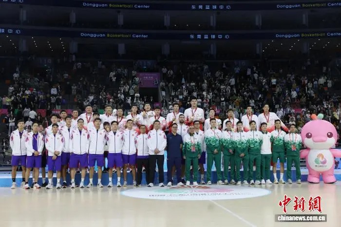 12日晚,广东队夺得十五运男篮成年组冠军。赛后,广东队主动邀请香港队和澳门队一同合影。镜头前,三地球员站成整齐队列,广东队的红、香港队的蓝与澳门队的绿,三色领奖服交相辉映。