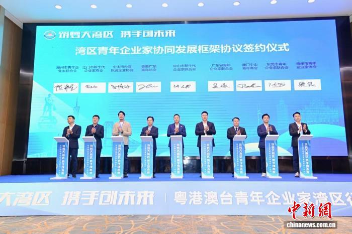 图为湾区青年企业家协同发展框架协议签约仪式。