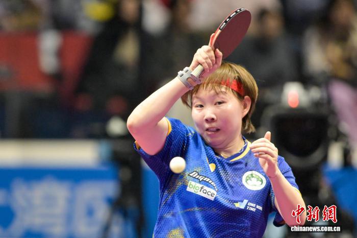 11月13日,第十五届全国运动会乒乓球成年组女子单打1/4决赛在澳门银河综艺馆举行。其中,澳门队选手朱雨玲以4:2战胜辽宁队选手陈幸同,晋级四强。图为朱雨玲在比赛中。中新社记者 陈永诺 摄