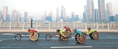 残特奥会女子全程马拉松T54级参赛选手在比赛中。新华社记者 毛思倩 摄