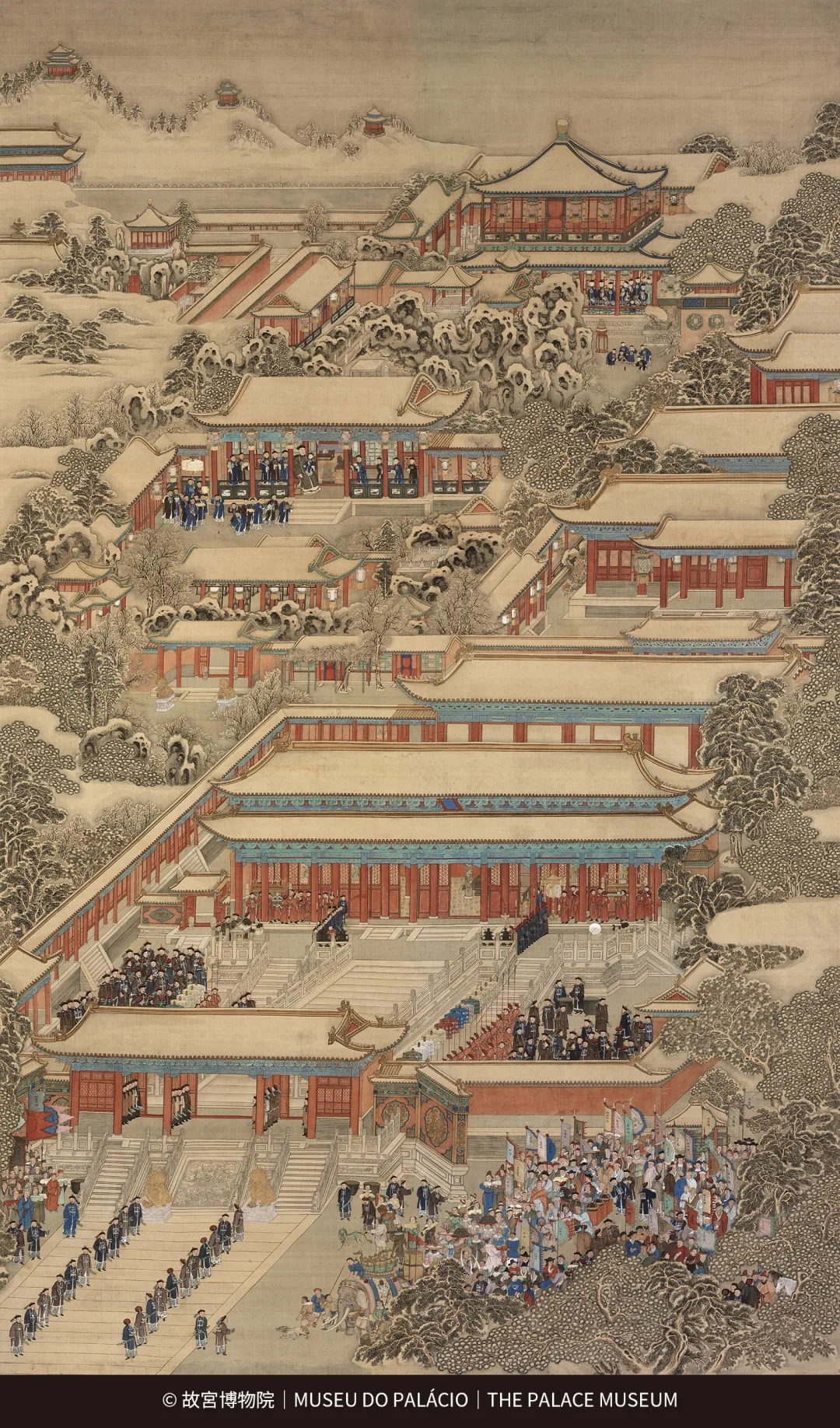 清代《万国来朝图》是乾隆时期宫廷艺术的瑰宝,以工笔重彩技法生动描绘了元旦庆典时各国使臣齐聚紫禁城的盛况。这种将节日庆典与政治威权融合一处的表现手法是清代宫廷纪实绘画的典型特征。画作展现了清王朝鼎盛时期对外交往的恢弘气象。