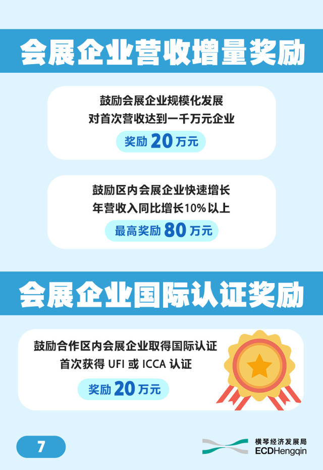 为降低企业办展成本,《扶持办法》还对“一会展两地”项目往来琴澳场地间的交通费用给予补贴。对参会参展代表葡语及西语国家代表占比超过10%的项目,也设有相应激励措施。