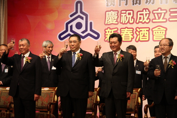 3月27日,李刚主任、陈启明副主任出席澳门街坊总会庆祝成立30周年暨新春酒会,澳门特区行政长官崔世安、全国政协副主席何厚铧、外交公署副特派员冯铁等出席。