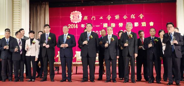 4月30日,陈启明副主任出席澳门工联总会庆祝“五一”国际劳动节酒会,并与澳门特区行政长官崔世安、全国政协副主席何厚铧、外交公署副特派员冯铁等共同主礼。