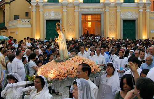 为纪念葡萄牙人最崇拜的花地玛圣母而举行的典礼。据说,圣母曾在1917年于葡萄牙的花地玛显灵数次。圣母像由一身素白的妇女们抬着走在队伍的前列,而队伍中三名儿童的衣着打扮就像当年在花地玛看见圣母显灵的孩子一样。上百名的信徒沿途唱圣诗、念祷文跟随。巡游每年从圣母玫瑰堂出发到主教山上的圣母小教堂,并在此举行露天弥撒。