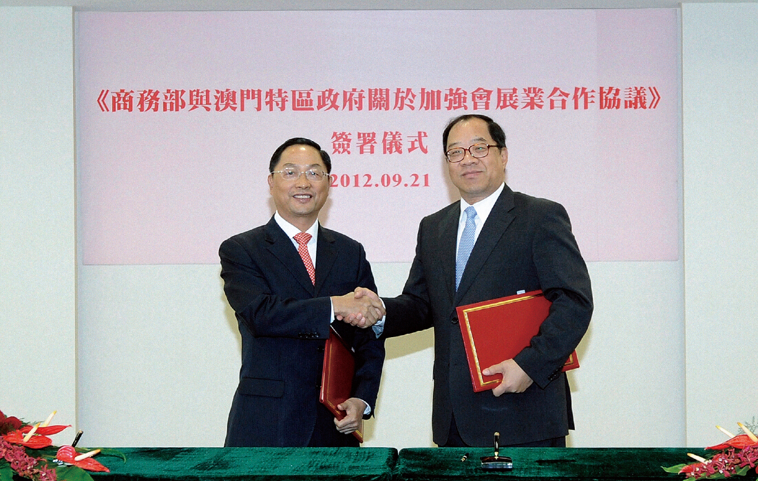 国家商务部与特区政府签署《关于加强会展业合作协议》,进一步落实了《内地与澳门关于建立更紧密经贸关系的安排》(CEPA)中有关会展业合作的内容。协议鼓励双方对会展业合作提供资金、通关、税收等方面的政策支持,为内地企业和个人赴澳参会参展提供便利措施。