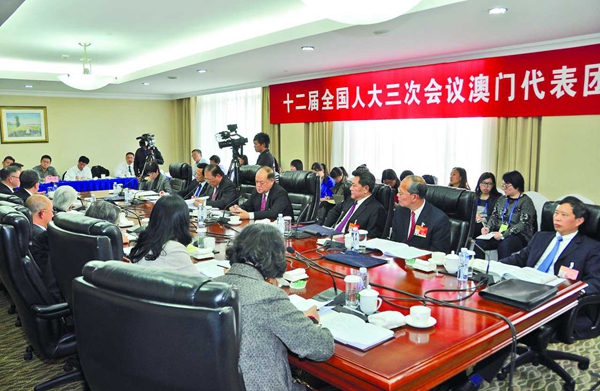 3月5日,澳区全国人大代表团审议政府工作报告。(图片来源:澳门日报)
