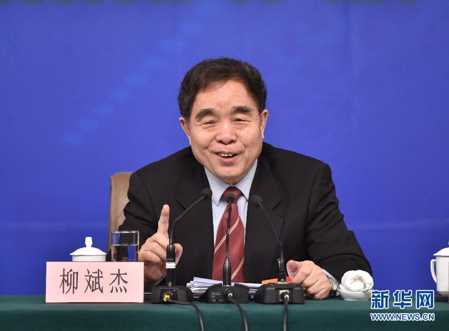 3月10日,十二届全国人大三次会议新闻中心举行记者会,邀请全国人大教科文卫委员会主任委员柳斌杰、全国人大内务司法委员会副主任委员王胜明、全国人大财政经济委员会副主任委员尹中卿、全国人大环境与资源保护委员会副主任委员袁驷、全国人大农业与农村委员会副主任委员刘振伟,就人大专门委员会与人大工作回答中外记者提问。这是柳斌杰在回答记者提问。新华社记者 李鑫 摄