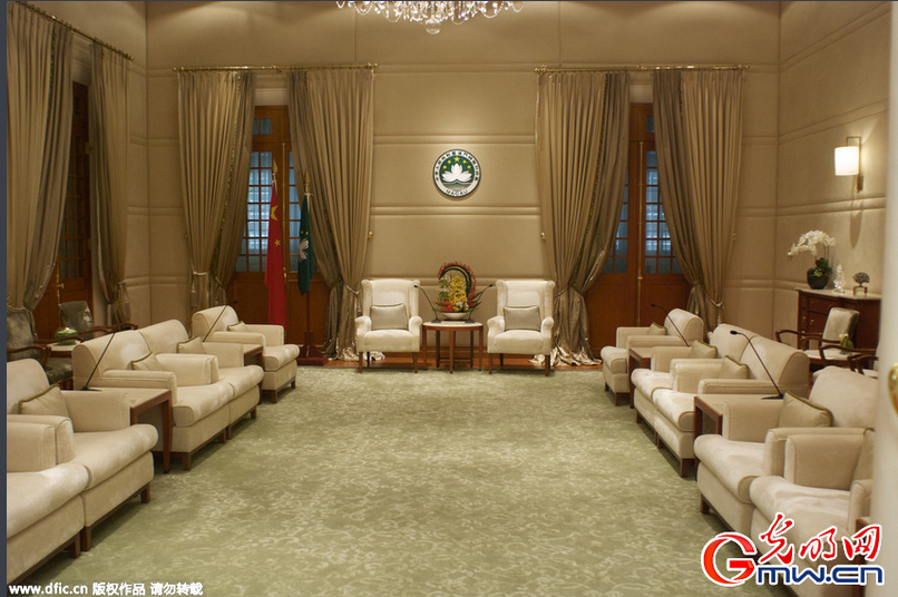 政府总部的礼宾楼内,设有行政会会议室、莲花厅,以及绿、黄、蓝三个厅等,蓝厅为特区政府举行宴会等活动的场所;绿厅则为行政长官会见贵宾及访澳代表团的场所,厅内布置全部为现代家具,但参观者只能“远观”,不能内进参观。