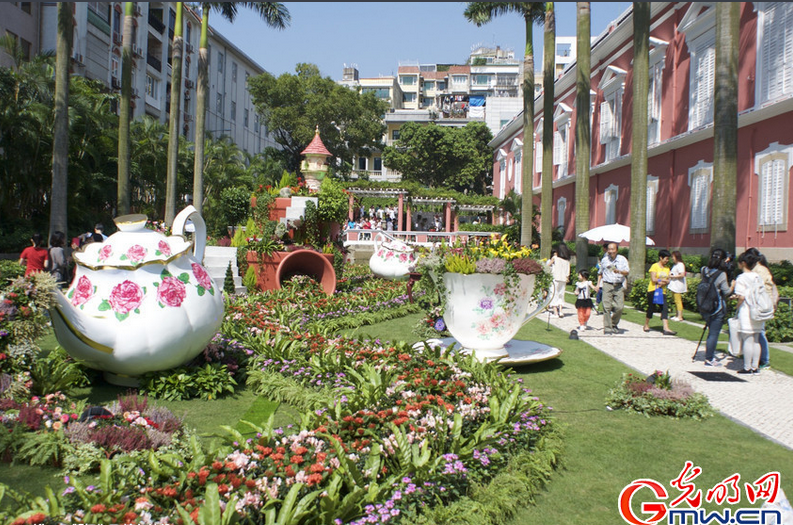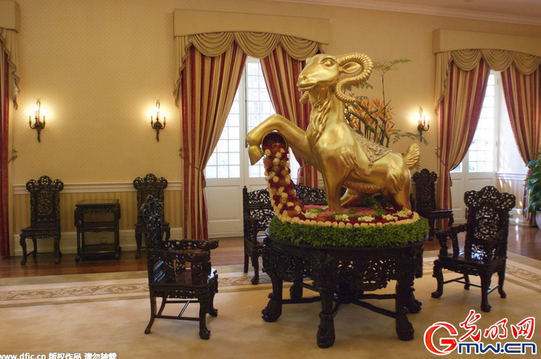 政府总部内除摆放一般时花植物外,还在礼宾楼内用中国传统六大插花容器 (已列入国家非物质文化遗产) 展现中式插花作品。
