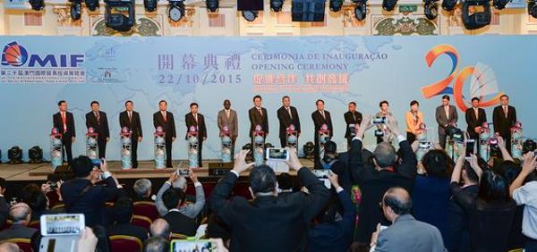 本网讯 10月22日上午,第20届澳门国际贸易投资展览会(MIF)在澳门威尼斯人会展中心开幕,澳门中联办主任李刚与澳门特区行政长官崔世安、外交部驻澳门特派员公署副特派员潘云东、澳门特区政府经济财政司司长梁维特等出席并主礼,梁维特代表特区政府致辞。出席开幕典礼的还有东帝汶、几内亚比绍、葡萄牙等葡语国家政府代表,以及国家民委、中国贸促会代表和北京、江苏、陕西等内地省市政府代表。