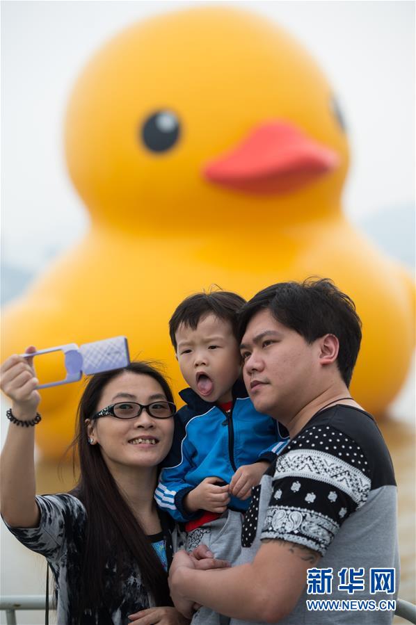 来自内地的陈先生说,自己儿子从来没看过大黄鸭。这次趁“五一”带他来澳门度假,恰好赶上了。“儿子从小洗澡就喜欢玩小黄鸭,这次看到了大黄鸭,非常高兴。”