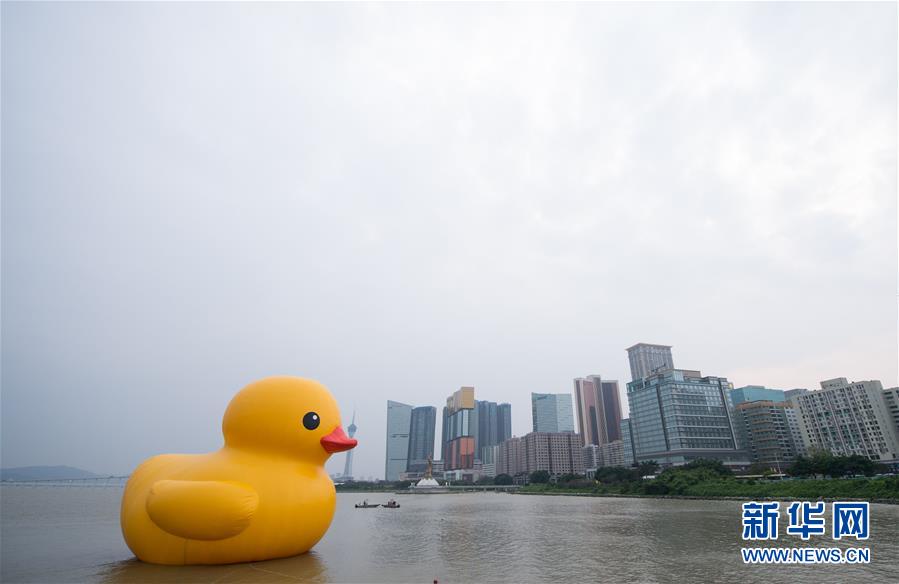 4月29日,由荷兰艺术家弗洛伦泰因·霍夫曼创作的艺术品大黄鸭来到澳门科学馆与观音莲花苑中间海面,吸引市民前来观赏。据悉,大黄鸭将在澳门停留至5月27日。新华社记者张金加摄
