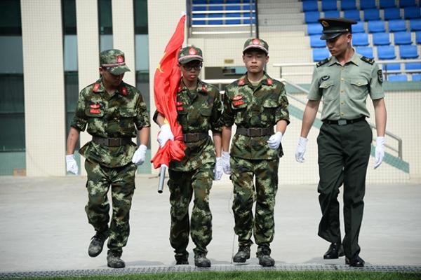 5月14日,澳门特区政府教育暨青年局与中国人民解放军驻澳门部队共同举办的首届“国旗下的说话——澳门中学生国旗手训练营”在驻澳门部队凼仔军营举行,来自澳门18所中学的138名学生参加活动。新华社记者张金加摄
