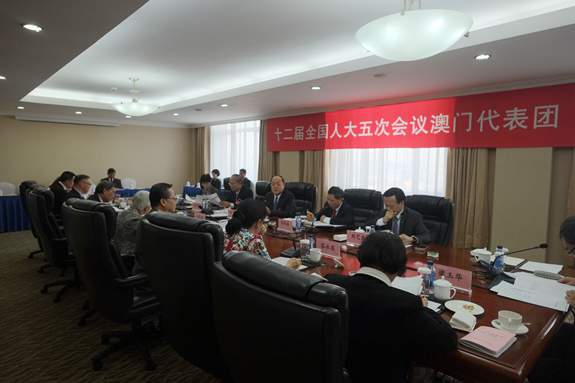 十二届全国人大五次会议澳门代表团举行第一次全体会议。(图片来源:中央政府驻澳门联络办)