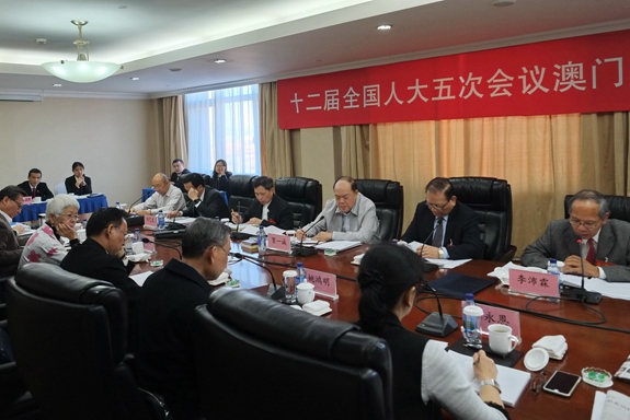 本网讯 3月13日,十二届全国人大五次会议澳门代表团举行全体会议,审议最高人民法院工作报告和最高人民检察院工作报告。全国人大华侨委员会主任白志健、中央政府驻澳门联络办公室副主任陈斯喜和澳区全国人大代表分别发言。