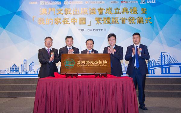 本网讯 7月18日,中央政府驻澳门联络办公室副主任薛晓峰在澳门旅游塔出席澳门文教出版协会成立典礼暨《我的家在中国》繁体版首发仪式,与澳门特区政府社会文化司司长谭俊荣和广东省委常委、宣传部部长慎海雄等共同主礼。