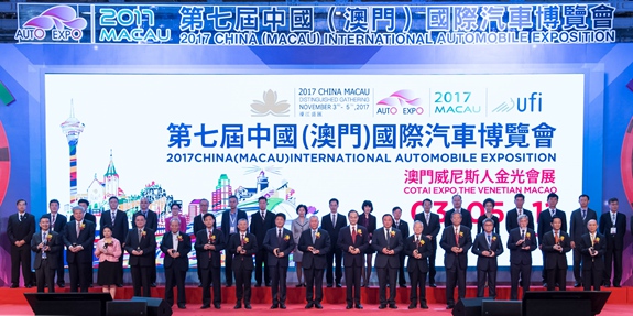 本网讯 11月3日上午,中央政府驻澳门联络办公室主任郑晓松在澳门威尼斯人金光会展中心出席第七届中国(澳门)国际汽车博览会开幕式,与全国政协副主席何厚铧、外交公署特派员叶大波、国务院国资委副秘书长彭华岗、商务部外贸发展事务局局长孙成海、南光集团董事长傅建国等共同主礼。