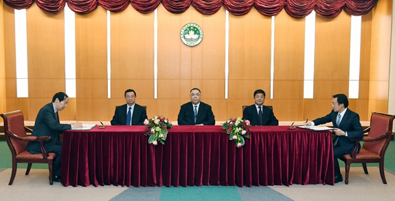 本网讯 11月30日中午,中央政府驻澳门联络办公室主任郑晓松在澳门特区政府总部出席《内地与澳门特区深化更紧密文化关系安排协议书》《关于文化遗产领域交流与合作更紧密安排协议书》签署仪式,与特区行政长官崔世安、文化部部长雒树刚共同见证澳门特区政府社会文化司司长谭俊荣和国家文物局局长刘玉珠签署协议。此次协议签署是对双方分别于2006年和2016年签署的《内地与澳门特区更紧密文化关系安排协议书》《内地与澳门特区2016—2018年文化交流与合作执行计划》的进一步扩展和深化,为未来澳门与内地文化交流与合作注入了新的活力、提供了法律性保障。