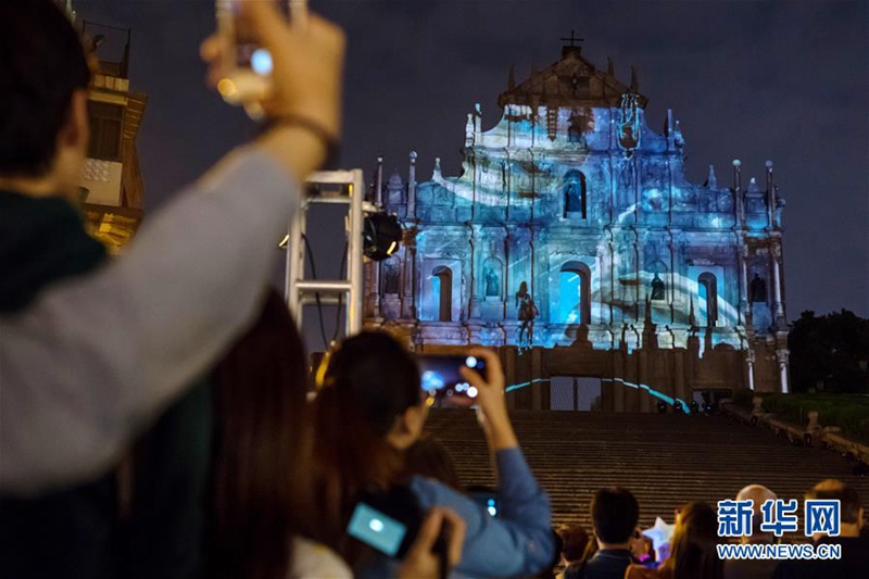 2017年澳门光影节12月3日晚在大三巴牌坊举行开幕式。今年为期一个月的光影节将以多种艺术形式,传颂澳门的多元文化融合以及娓娓动人的历史故事。