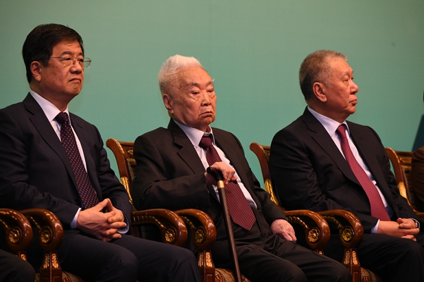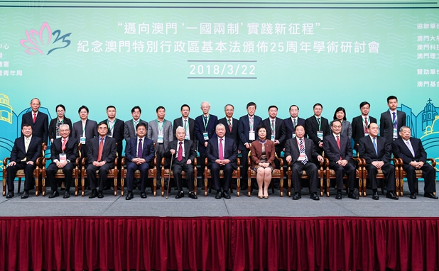 本网讯 3月22日上午,“迈向澳门‘一国两制’实践新征程”——纪念澳门特别行政区基本法颁布25周年学术研讨会在澳门旅游塔开幕。全国人大常委会原副委员长王汉斌与全国政协副主席何厚铧、澳门特区代理行政长官陈海帆、中央政府驻澳门联络办公室主任郑晓松、全国人大法律委员会原主任委员乔晓阳、国务院港澳办副主任冯巍、外交公署特派员叶大波、全国港澳研究会会长徐泽、澳门特区立法会主席贺一诚、澳门基本法推广协会会长廖泽云和理事长崔世昌共同担任主礼嘉宾。
