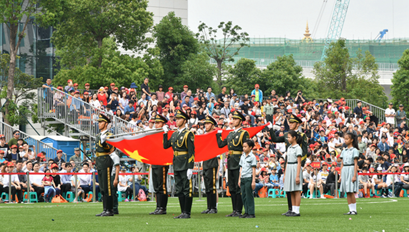4月29日上午,解放军驻澳门部队举行第十五次军营开放日活动。图为当天举行的升国旗仪式。