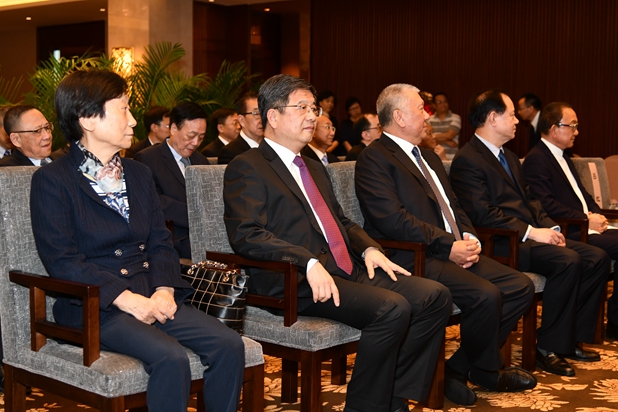 郑晓松主任出席向不再连任的澳区十二届全国政协常委和委员颁发纪念证牌和荣誉证仪式。(图片来源:中央政府驻澳门联络办公室)