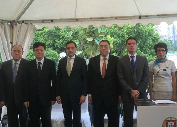 本网讯 6月10日下午,中央政府驻澳门联络办公室副主任薛晓峰应邀出席葡萄牙驻澳门及香港总领事馆在领事官邸举办的“葡国日、贾梅士日暨葡侨日”庆祝酒会,与澳门特区行政长官崔世安、葡萄牙税务国税秘书Antonio Mendonca Mendes、葡萄牙驻澳门及香港总领事薛雷诺、外交公署副特派员王冬、立法会主席贺一诚以及特区政府行政法务司司长陈海帆、经济财政司司长梁维特、保安司司长黄少泽、社会文化司司长谭俊荣、运输工务司司长罗立文等共同主礼。酒会上,崔世安、Antonio Mendonca Mendes和薛雷诺分别致辞。澳门特区政府官员、部分立法会议员、各国驻港澳总领馆官员、澳门各界人士代表以及澳门土生葡人代表约300多人出席活动。