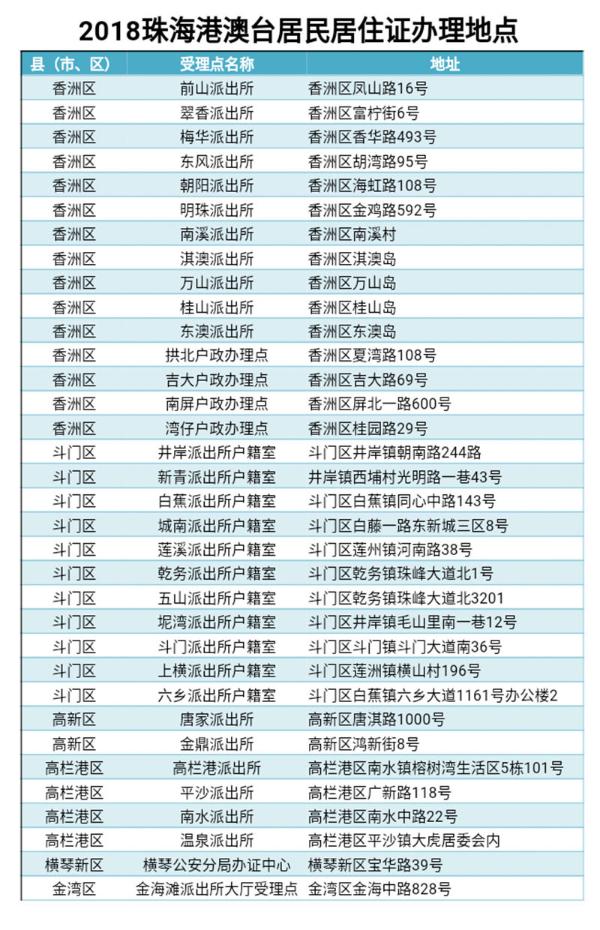 2018珠海港澳台居民居住证办理地点