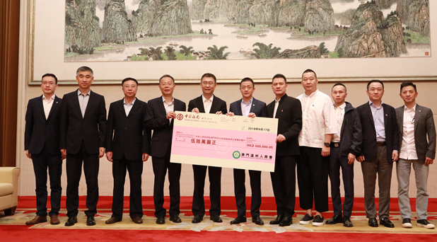 姚坚副主任接收澳门温州人商会扶贫捐款。(图片来源:中央政府驻澳门联络办公室)