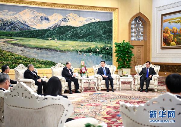 中共中央政治局常委、国务院副总理韩正10月10日上午在人民大会堂会见了由贺一诚主席率领的澳门特别行政区立法会参访团,与他们交流并合影留念。