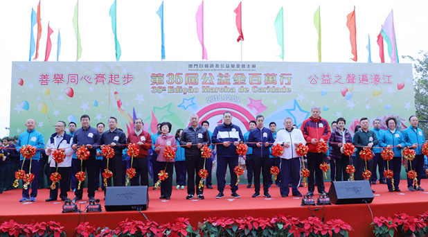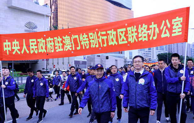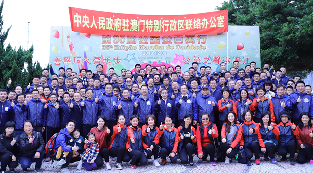 本网讯 12月9日上午,中央政府驻澳门联络办公室副主任张荣顺、姚坚、孙达出席澳门日报读者公益基金会主办的“第35届公益金百万行”活动起步剪彩仪式,并率机关干部员工及家属180余人参加步行活动。