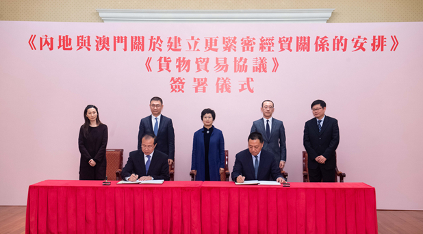 《CEPA货物贸易协议》由国家商务部国际贸易谈判代表(正部长级)兼副部长傅自应和特区经济财政司司长梁维特共同签署。《CEPA货物贸易协议》是CEPA(内地与澳门关于建立更紧密经贸关系的安排)升级的重要组成部分,是内地与澳门在“一国两制”框架下按照世界贸易组织规则作出的特殊经贸安排,是实行高水平贸易自由化便利化政策,全面推进内地与澳门互利合作,支持澳门融入国家发展大局的重要举措,充分体现了中央政府对澳门长期繁荣稳定的支持。