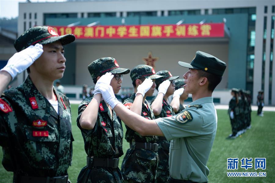 中国人民解放军驻澳门部队与澳门特区政府教育暨青年局5月11日举行2019澳门中学生国旗手训练营活动,来自澳门30所学校的260余名中学生参加。