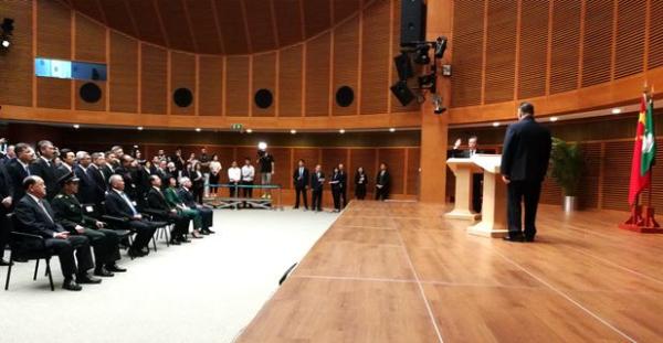 本网讯 7月17日下午,中央政府驻澳门联络办公室主任傅自应在澳门科学馆会议中心会议厅出席特区立法会主席宣誓就职仪式。澳门特区行政长官崔世安、全国政协副主席何厚铧、外交公署署理特派员王冬、驻澳部队政委孙文举、澳门终审法院院长岑浩辉、澳门立法会原主席贺一诚等共同出席。新当选的立法会主席高开贤在崔世安行政长官监誓下宣誓就职。