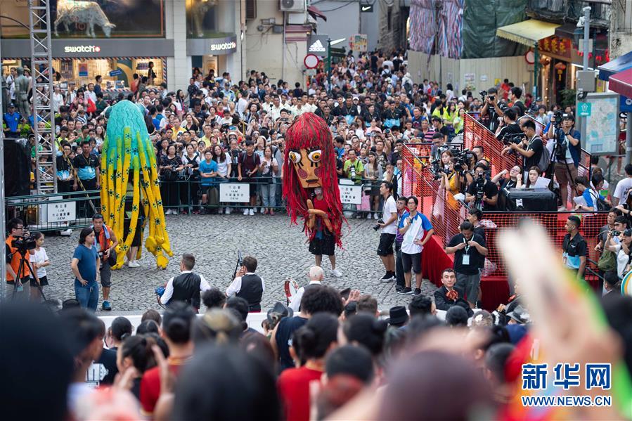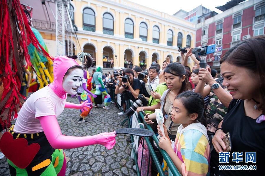 7月20日,演员在澳门街头进行澳门国际青年舞蹈节巡游表演。