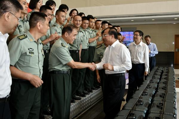 傅自应主任、孙达副主任“八一”建军节前夕慰问驻澳门部队。(图片来源:中央政府驻澳门联络办公室)