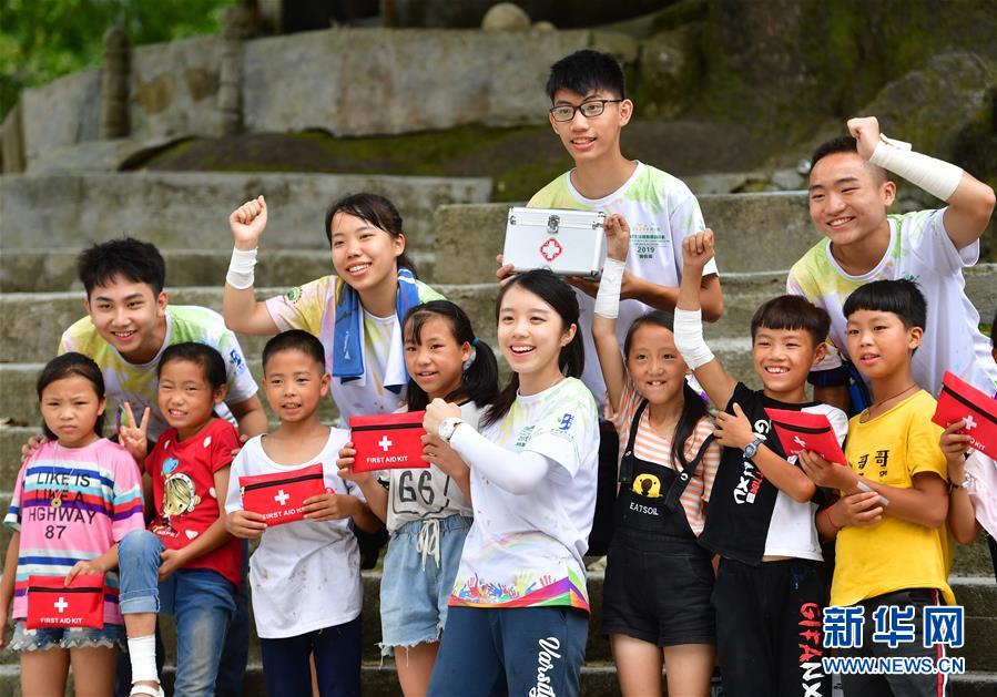 志愿者和乌英苗寨的孩子们在卫生课上。 新华社 黄孝邦 摄