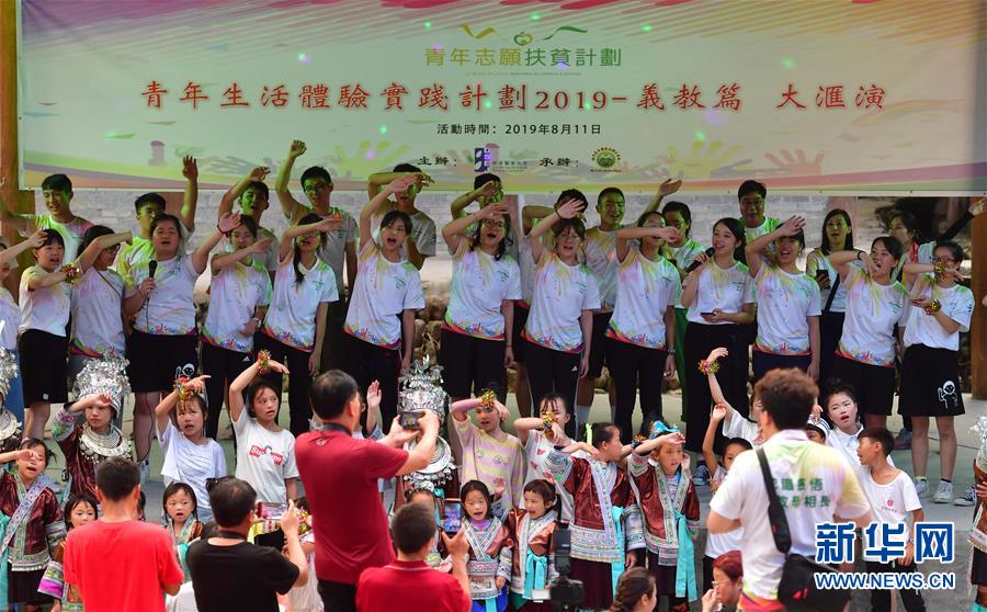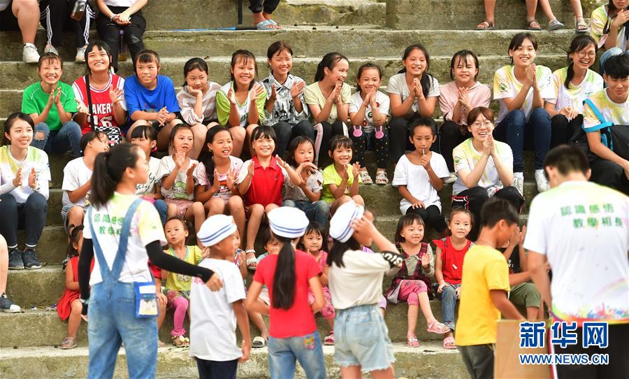 志愿者与乌英苗寨的孩子们进行文艺汇演。 新华社 黄孝邦 摄