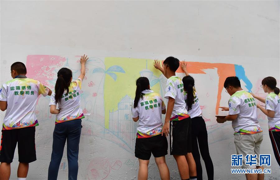 志愿者美化乌英教学点的校园环境。 新华社 黄孝邦 摄