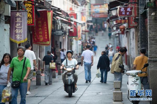 人们走在澳门福隆新街上。 新华社 张金加 摄