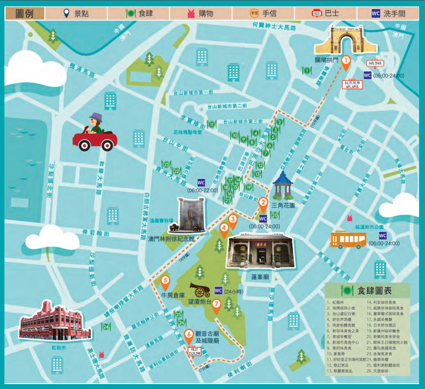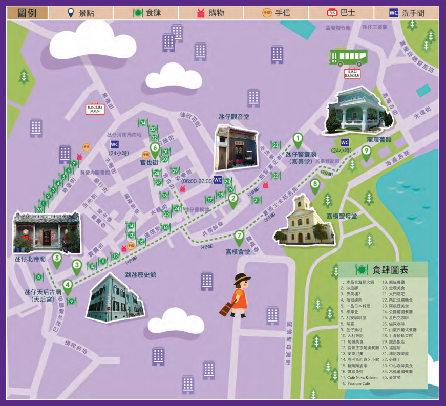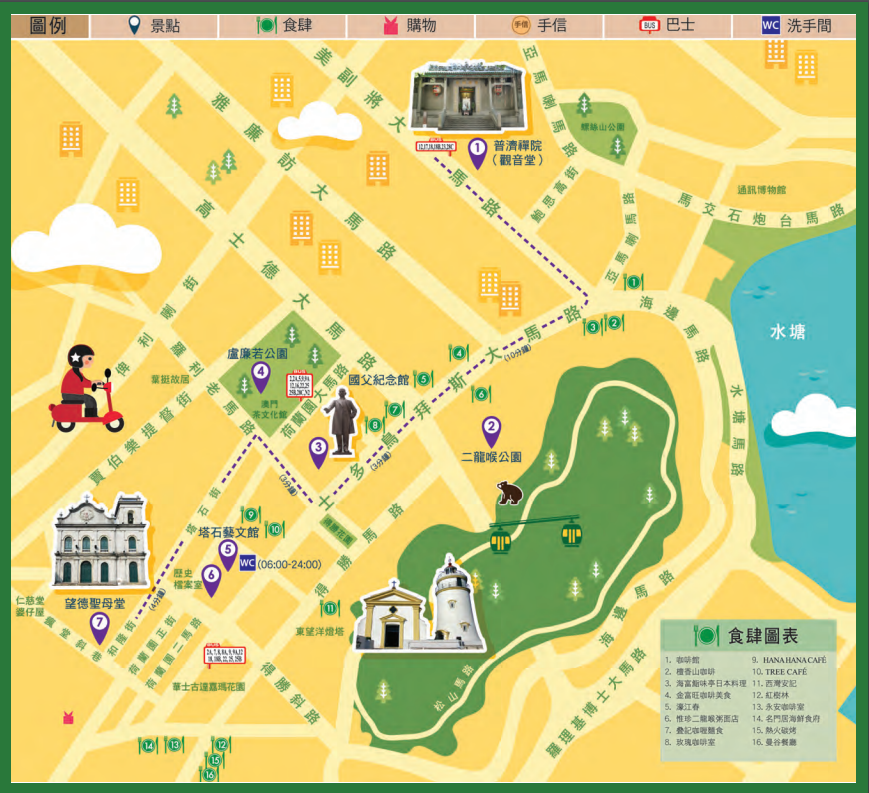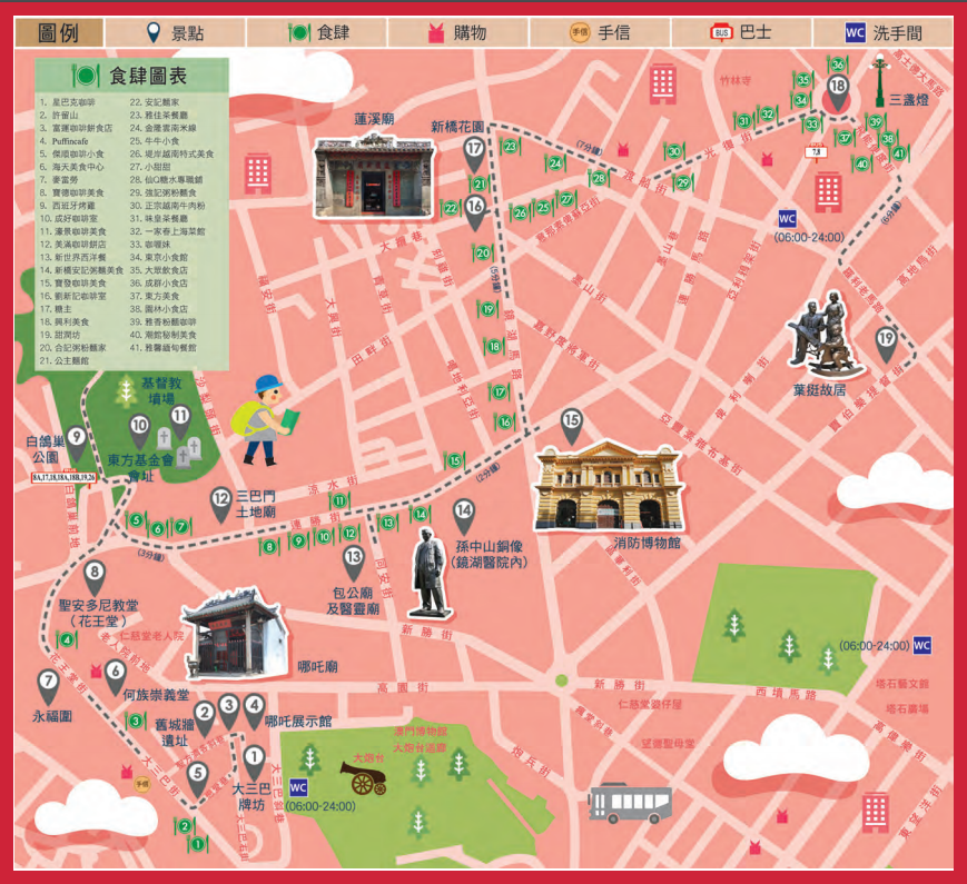 观音堂→二龙喉公园→澳门国父纪念馆→塔石艺文馆→塔石广场→望德圣母堂