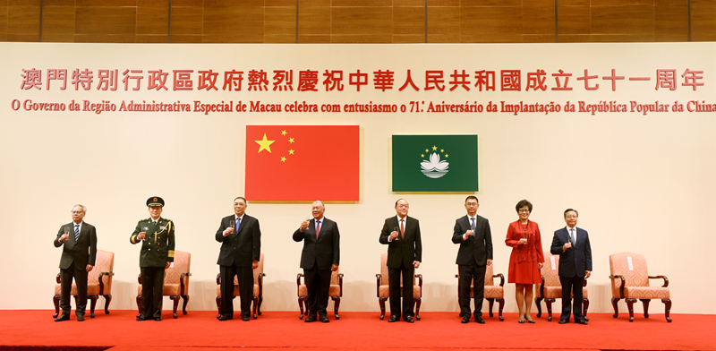 中央政府驻澳门联络办公室领导出席澳门特区庆祝中华人民共和国成立71周年招待酒会。(图片来源:中央政府驻澳门联络办公室)